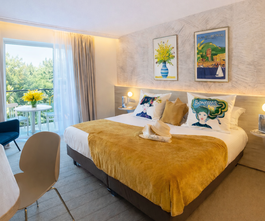 Plongez dans une atmosphère ensoleillée en séjournant dans nos chambres inspirées du mimosa, subtilement décorées pour évoquer la douceur de cette fleur emblématique et profitez de notre code promo MIMOSA26 pour bénéficier de -20% sur votre séjour à partir du 16/01/2026 jusqu’au 08/03/2026.
